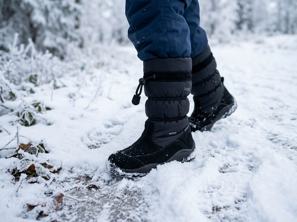 Cizmele de zăpadă pentru fete au închidere laterală cu fermoar, iar manșeta superioară are un șnur de strângere decorativ într-un singur punct. Încălțămintea are călcâi și vârf întărite și o talpă solidă din cauciuc. Suprafața cizmelor este dintr-o textilie rezistentă, care respinge apa și este rezistentă la vânt și este potrivită și pentru zăpadă mai înaltă.