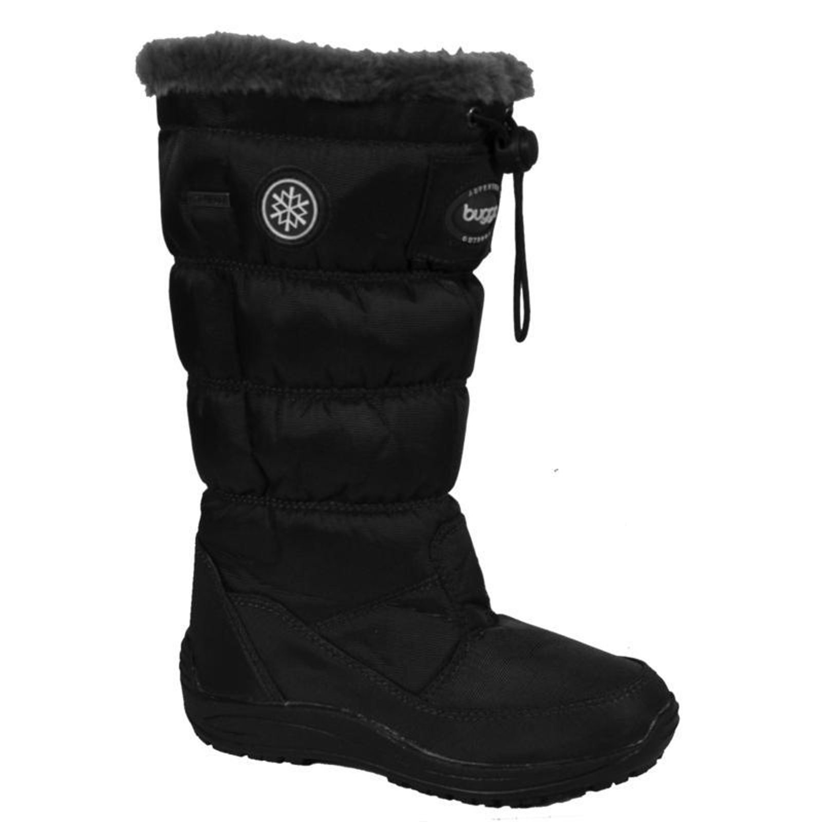Cizme de iarnă izolate cu membrană pentru fete - negru. Interiorul cizmelor este confecționat din blană artificială confortabilă, astfel încât picioarele tale vor rămâne calde și confortabile chiar și în zilele geroase.