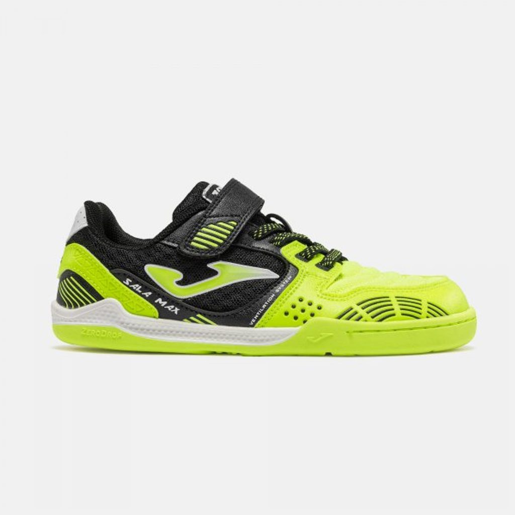 Joma pantofi barefoot de sală pentru copii SALA MAX JUNIOR FLUOR YELLOW BFSJS2609INV | teniși indoor pentru copii cu șiret, cu talpă flexibilă aderentă