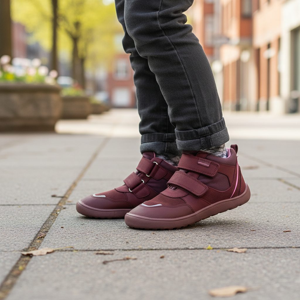 Pantofii Barefoot all-season BANET BORDO combină frumos materialele textile și pielea în nuanțe de roșu și roz. Se potrivesc picioarelor late normale, potrivite pentru degetul dominant și călcâiul normal și înalt. Botul anatomic asigură spațiu suficient pentru degetele de la picioare. Talpa este flexibilă, din cauciuc, cu un model fin, în roșu burgundy.