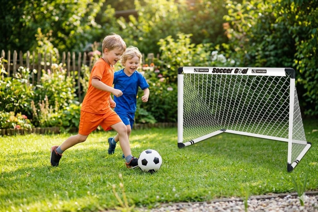 Sfatul nostru: Cumpărați două astfel de porți și creați un teren profesionist pentru copii oriunde pe iarbă. Veți vedea că, după un asemenea „meci al secolului”, seara vor dormi neîntorși!