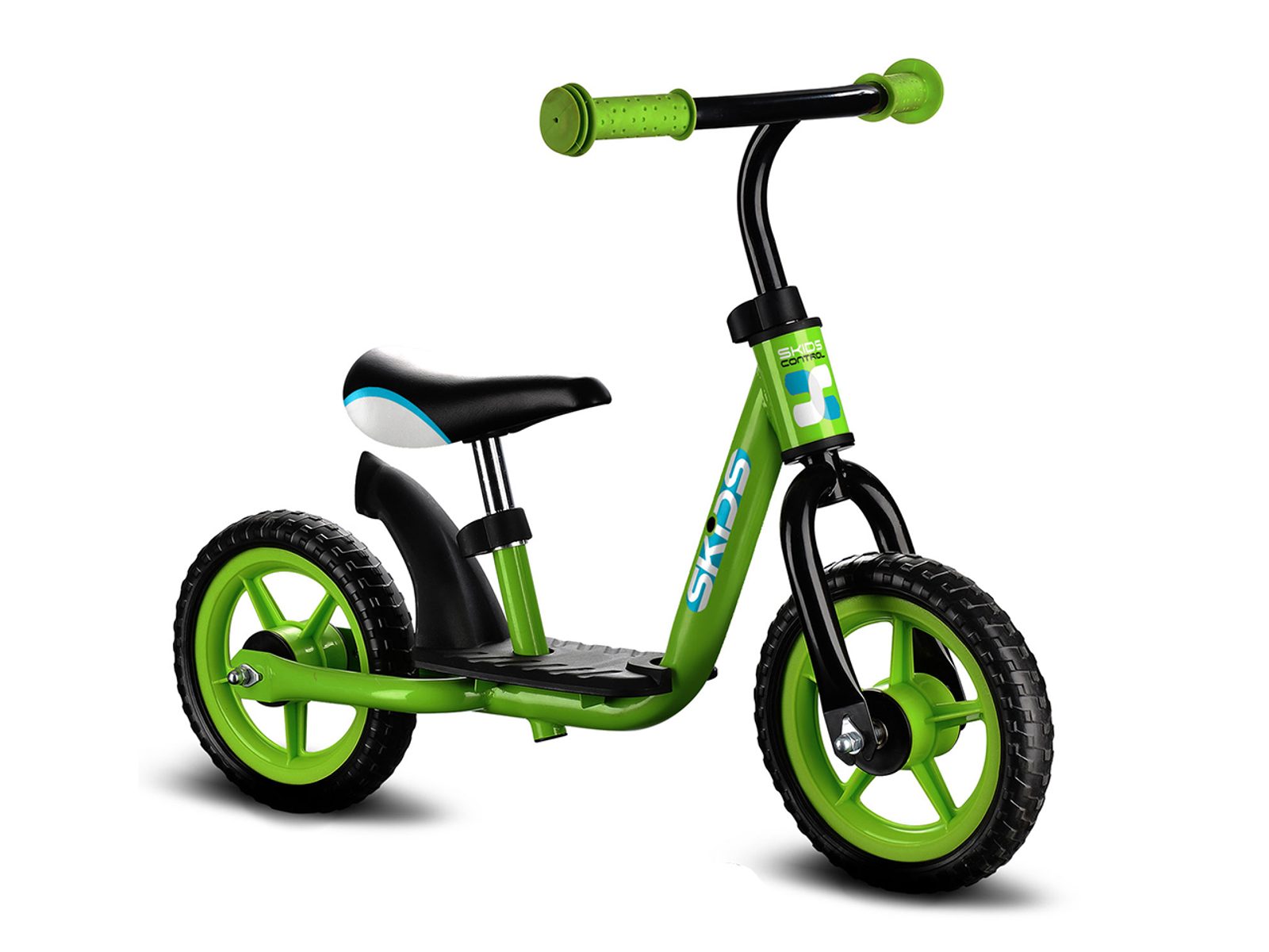 Odrážedlo, které může posloužit i jako koloběžka v krásné zelené barvě, je vhodná pomůcka pro procvičení rovnováhy.