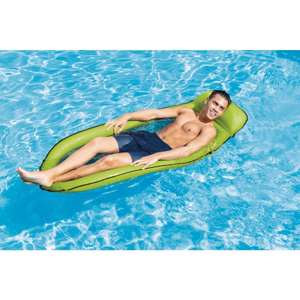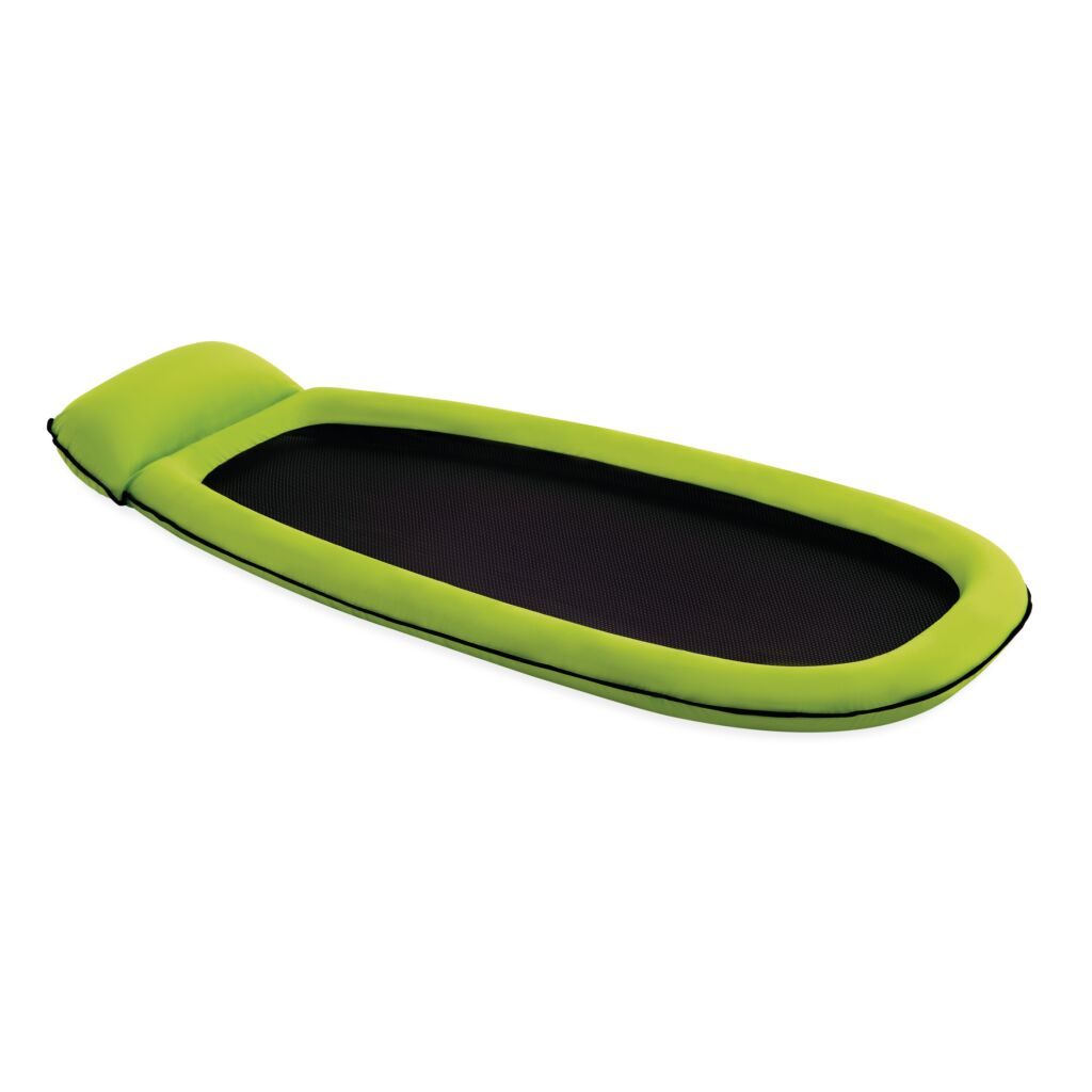 Șezlong cu perimetru gonflabil și plasă în mijloc.