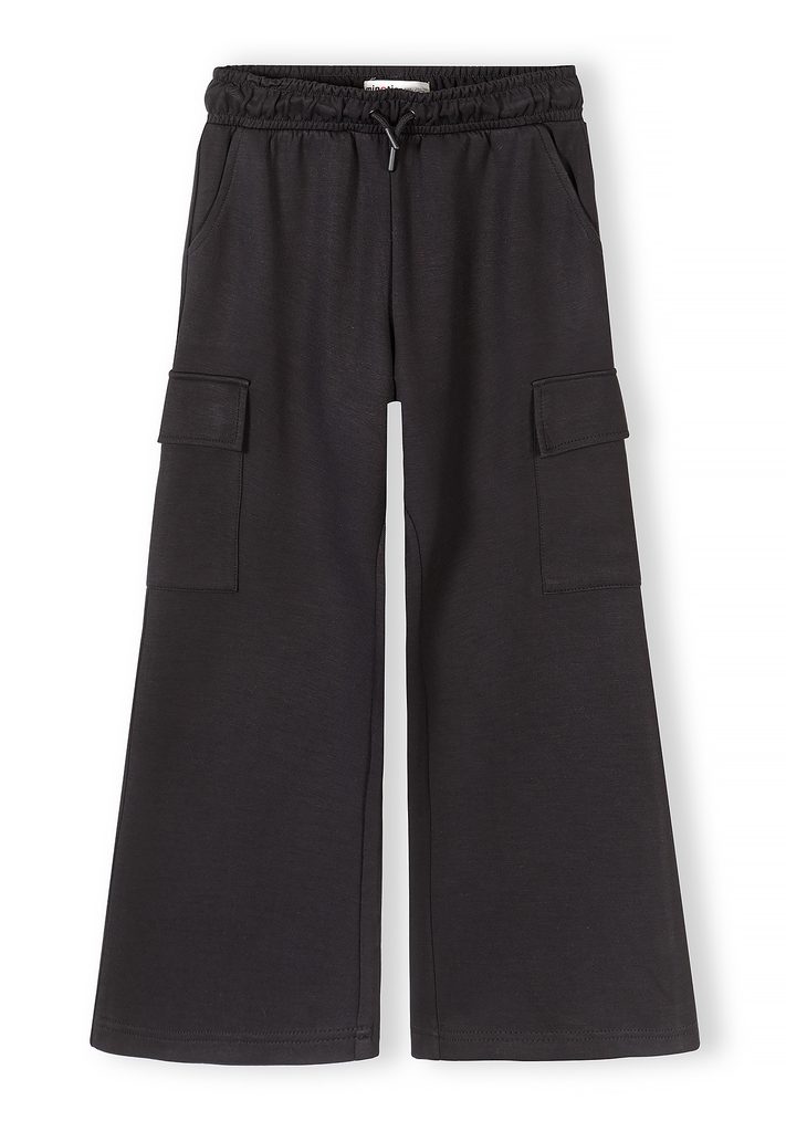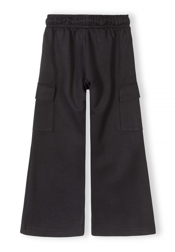 Pantaloni de trening negri pentru fete, cu craci largi și buzunare cargo